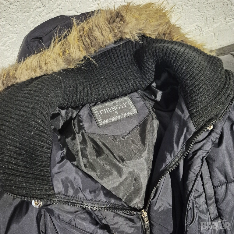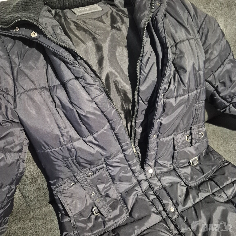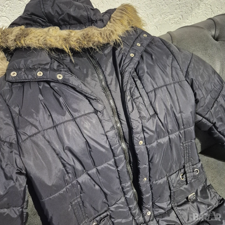 Черно дамско яке с качулка. Вталено. Подходящо за много студено време.