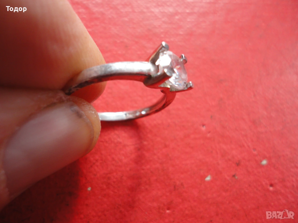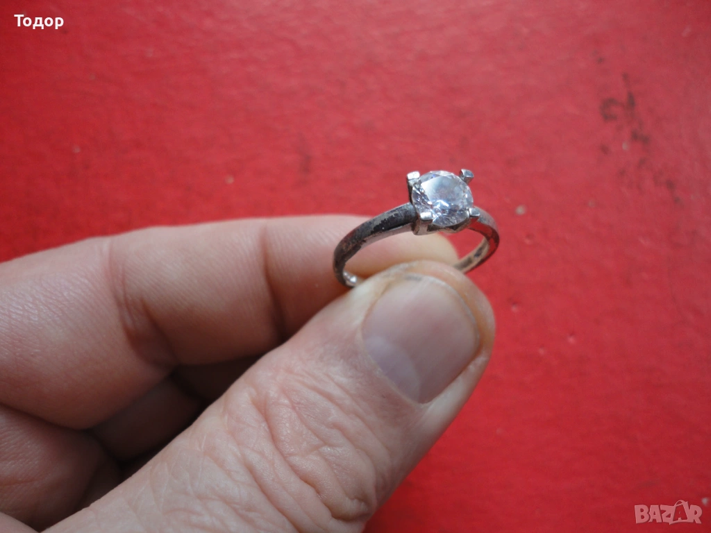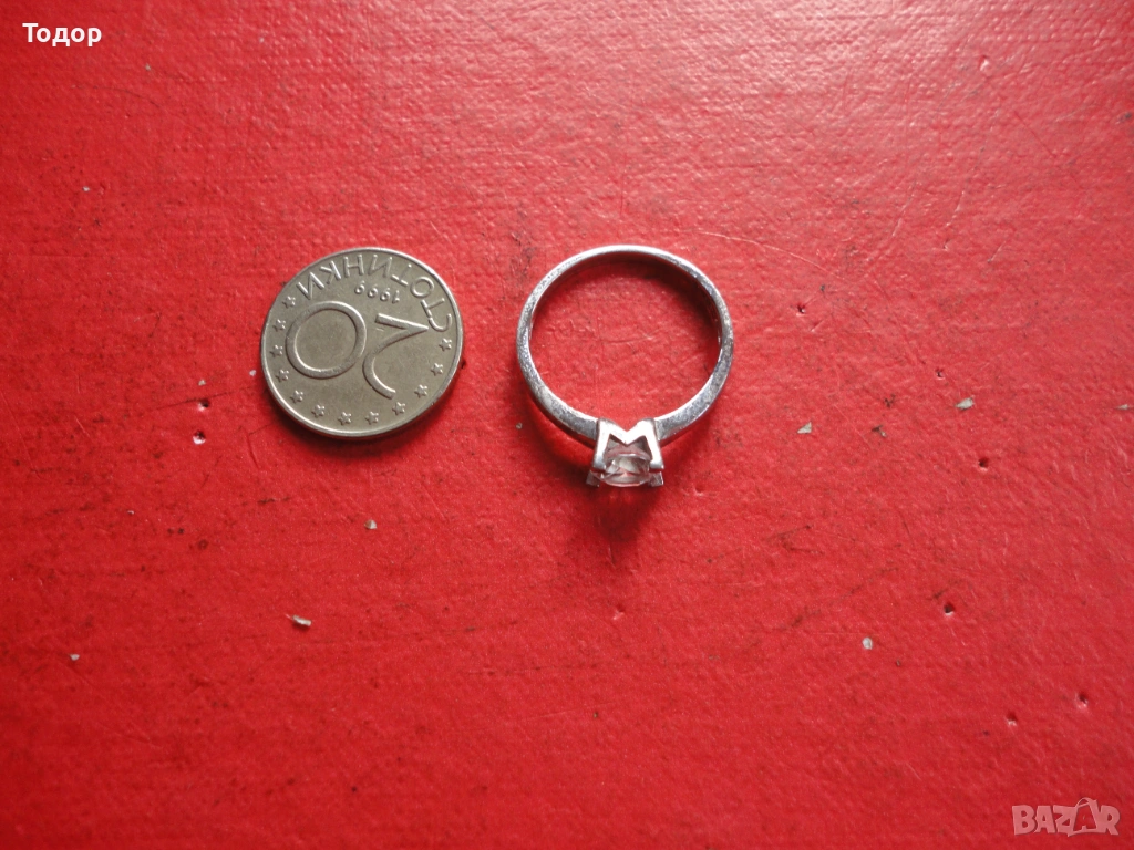 Вътрешен диаметър 18 мм Налични маркировки 925 а Камъка е перфектен с размери 6 мм Здрав Отлично състояние