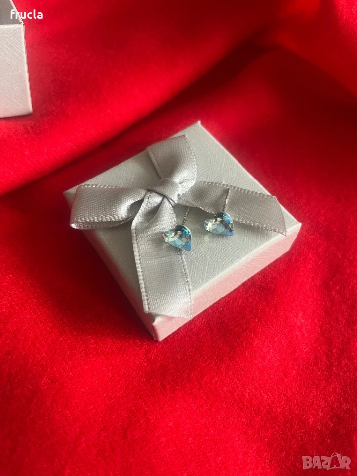 Сребърни Обеци Синьо Сърце → Обява 53305056