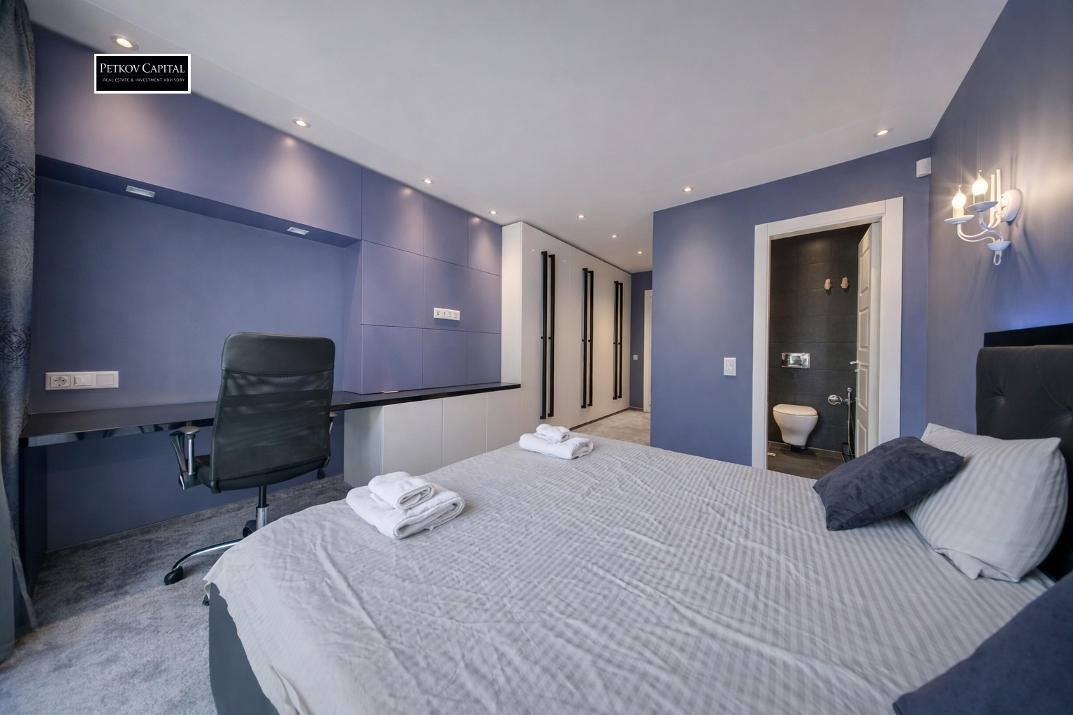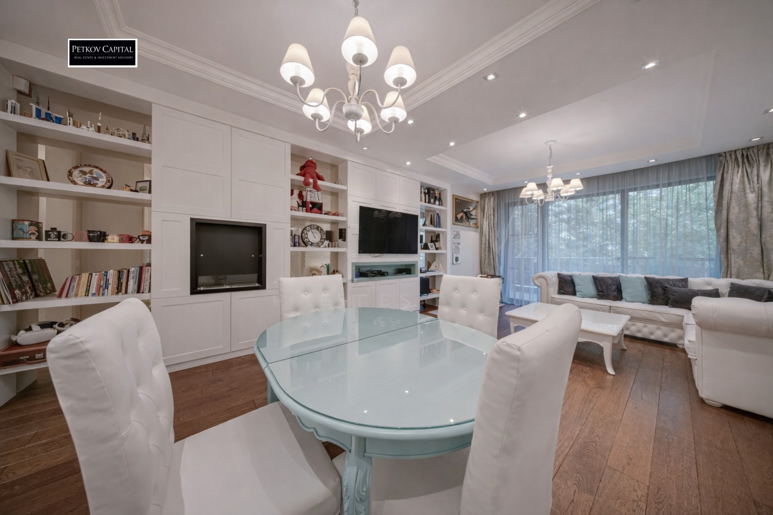 We are pleased to present a luxury four-bedroom apartment located in the prestigious MAXI complex, offering quick access to Ring Road and Simeonovsko Shose.