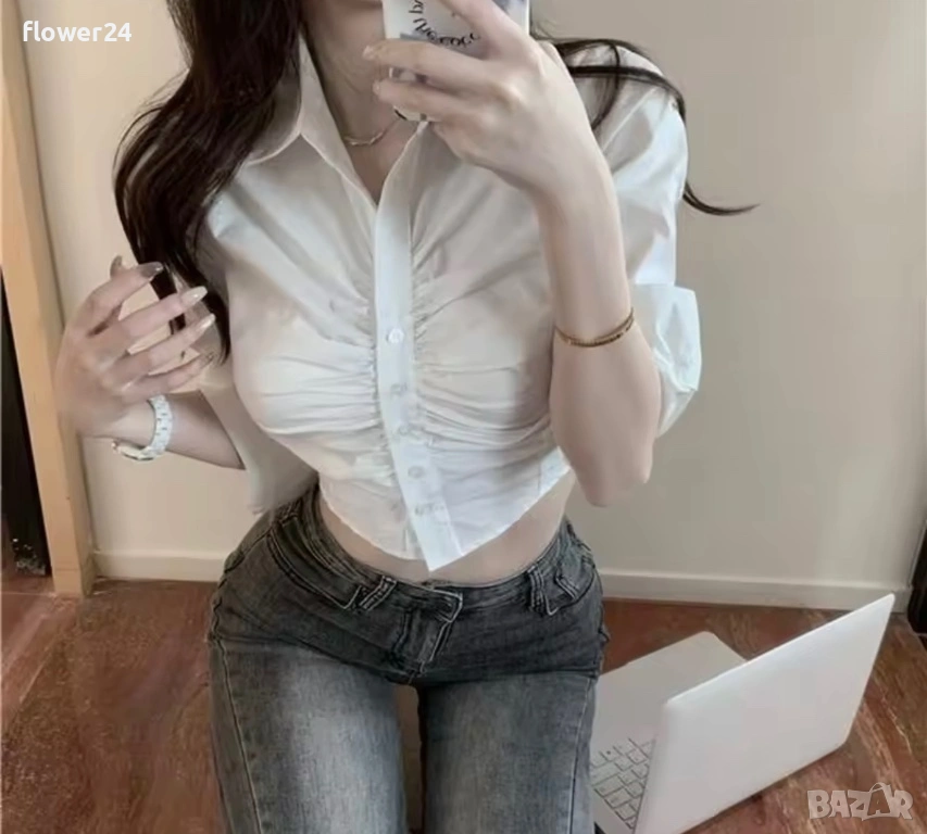 Дамска бяла къса риза S-M, снимка 1 - Ризи - 53305433 Дамска бяла къса риза S-M, снимка 2 - Ризи - 53305433 Дамска бяла къса риза S-M, снимка 3 - Ризи - 53305433 1/3