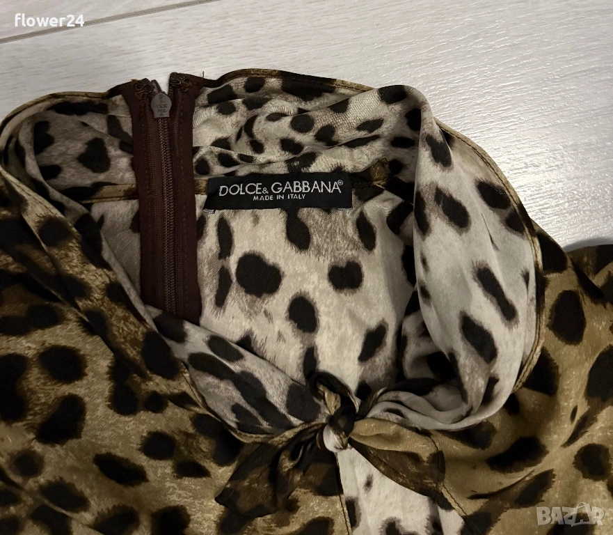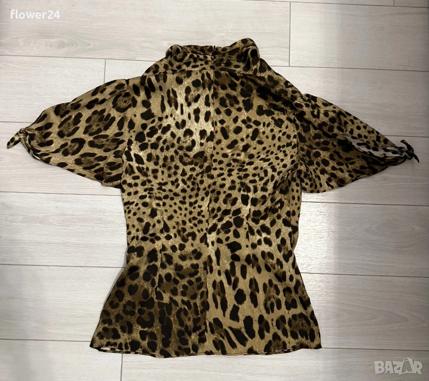 Риза от естествена коприна D&G, изключително фина, лека и красива, размер 36, може да стане на дами, носещи от S до М, обличана 1 път за 2 часа, без следи от употреба. Дължина: 61 см, бюст:до 90 см, талия до 68 см.