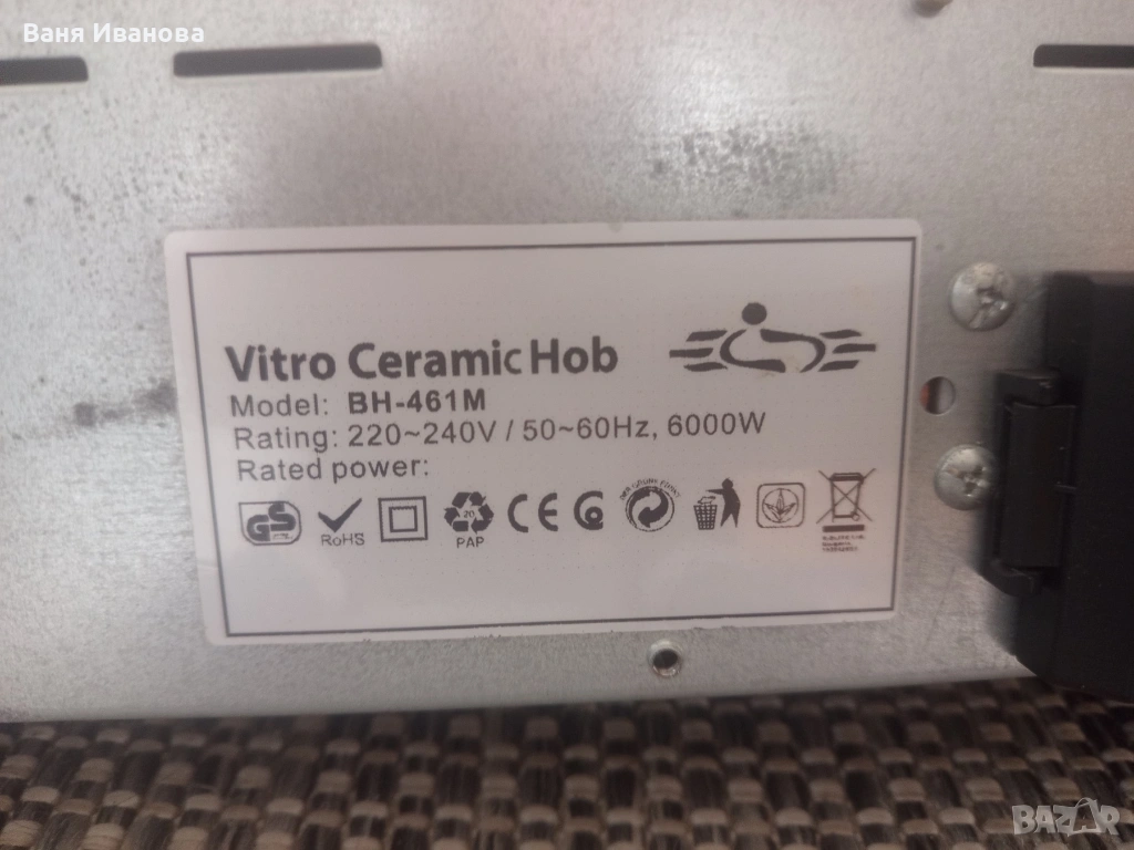 Керамичен готварски плот за вграждане, използван, с нормални следи от употреба. Мощност 6000 W.