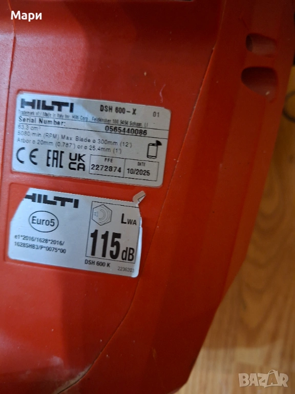 Hilti DSH 600 x с помпа бензинов фугорез