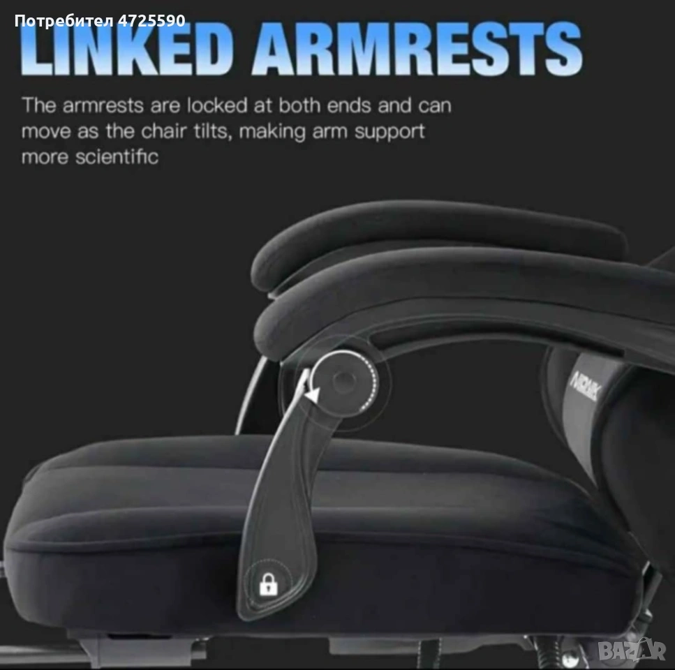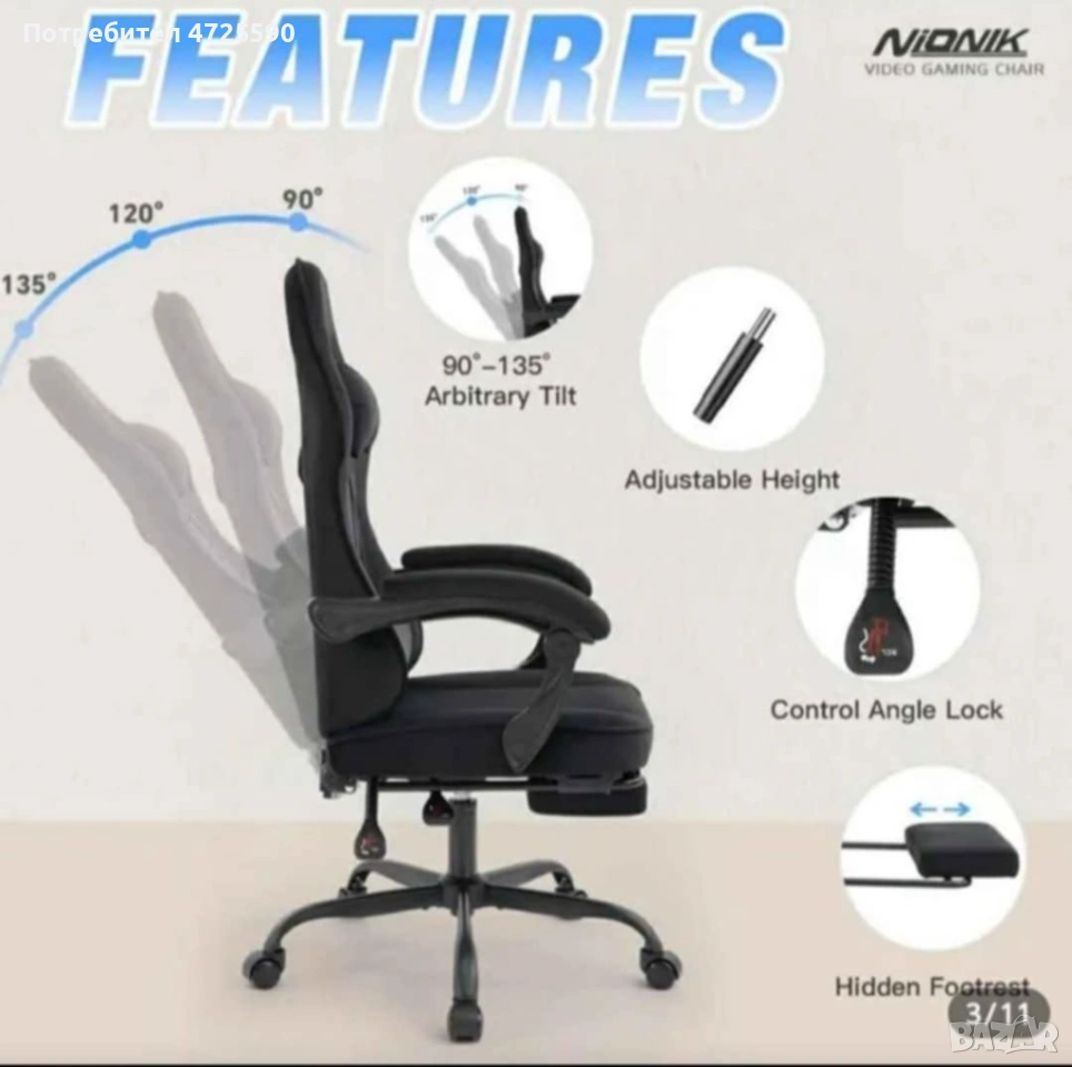 Заключване на облегалката под наклон от 90 до 135 градуса, както и функция за люлеене.