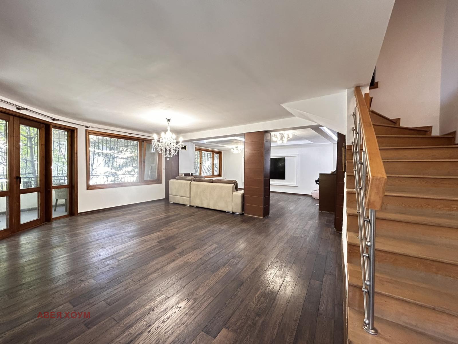 Етаж 1: голяма дневна с кухненски бокс (55кв.м), перално помещение, баня с тоалетна, килер и просторна тераса.