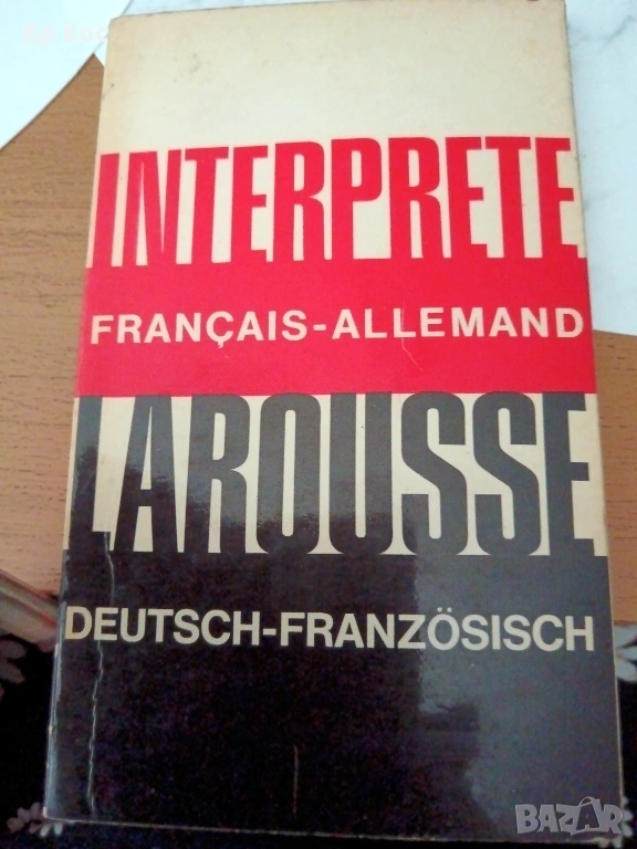 22. Interprete francais-allemand - larousse deutch-franzosisch – 1964г. - Класически джобен речник и разговорник, предназначен за бърза комуникация. Френско-немски и немско-френски преводи, допълнени с полезни фрази за ежедневието и пътуванията, за да се преодолеят езиковите бариери. Включва примери за разговори и някои основни граматически бележки. Предназначен за пътешественици, изучаващи езици и хора, които се нуждаят от бърза помощ при водене на разговор. Донесен лично от Люксембург - €7,50