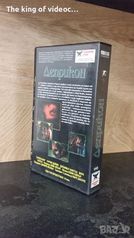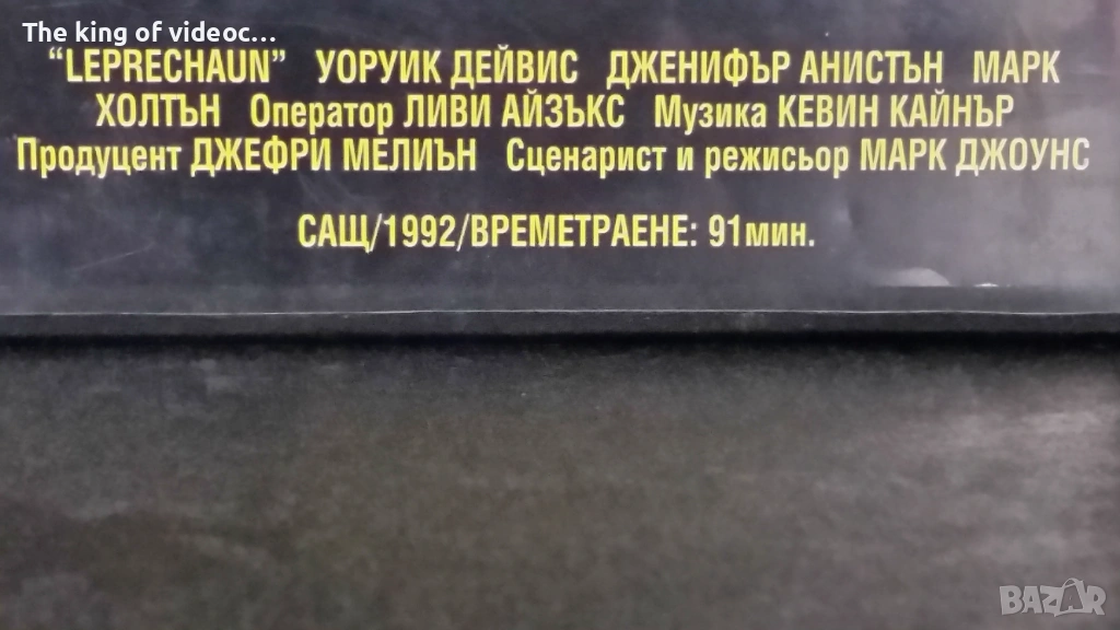 Продавам оригинална видеокасета от ALEKSANDARA VIDEO " Леприкон " 1992 година. Времетраене 91 минути. Жанр - Ужаси. Филмът е озвучен на български език от мъжки и женски глас. Филмът работи отлично. Касетата е с два златисти стикера. Кутията е без счупени ъгли. 17 снимки на обявата. 8 снимки на касетата в работещо състояние. Изпращам с Еконт или Спиди.