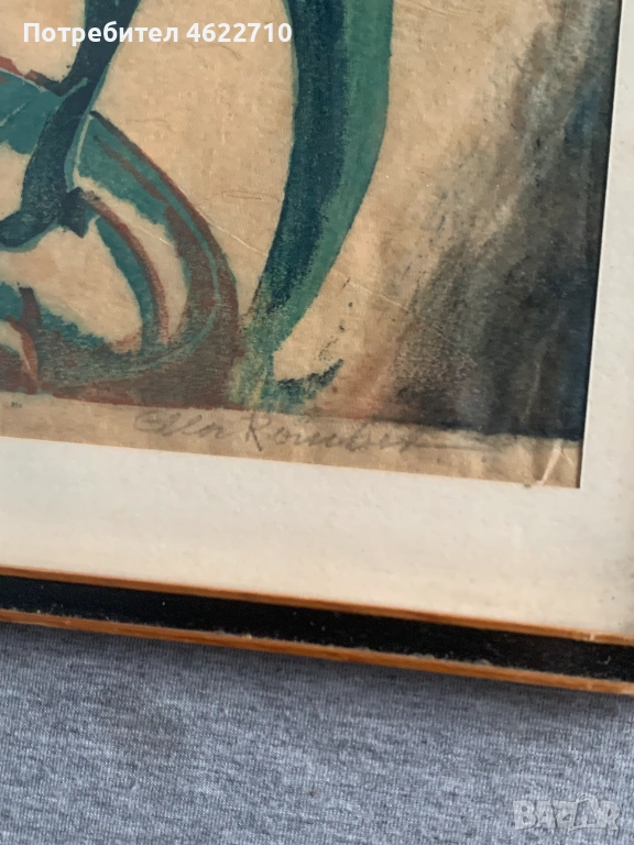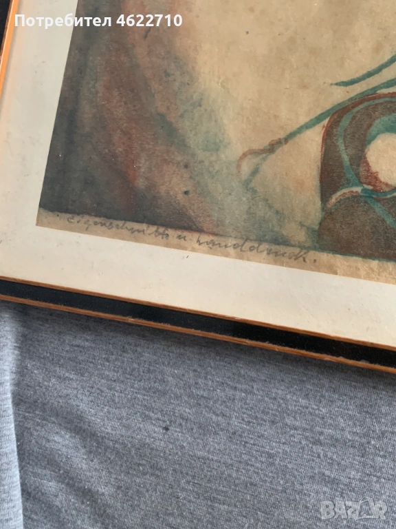 картина смесена техника подписана с рамка и стъкло размери 40см на 34см