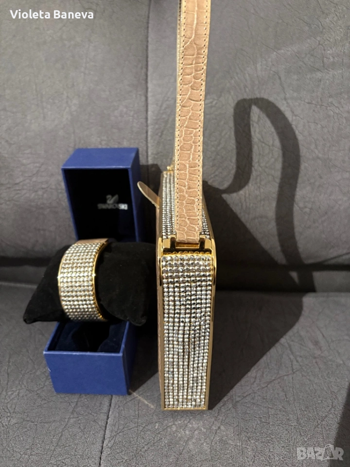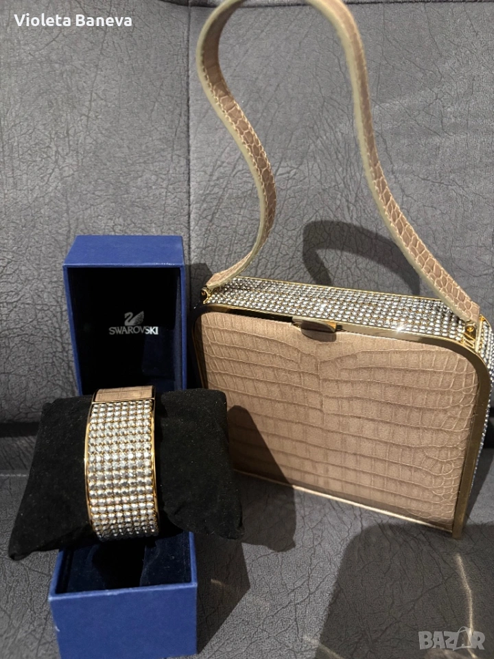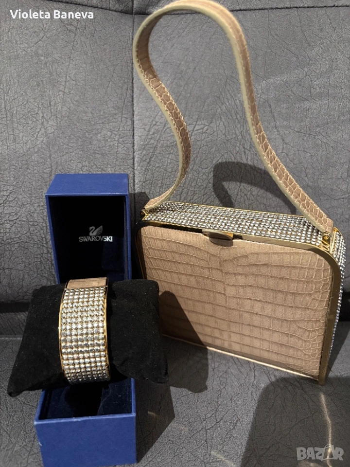 оригинален лимитиран, винтидж комплект Swarovski, включващ елегантна дамска чанта и гривна → Обява 53306797
