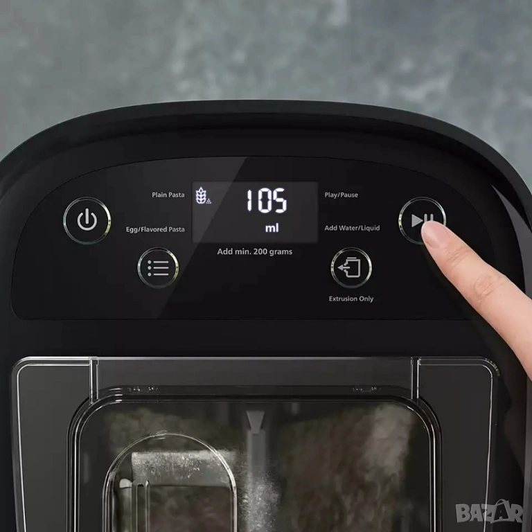 Лесно и удобно: Автоматичната технология за претегляне претегля брашното и показва точното количество течност, което да се добави към машината за паста – С части, подходящи за съдомиялна машина за лесно почистване.