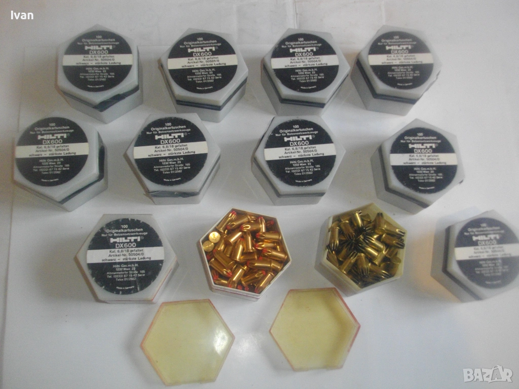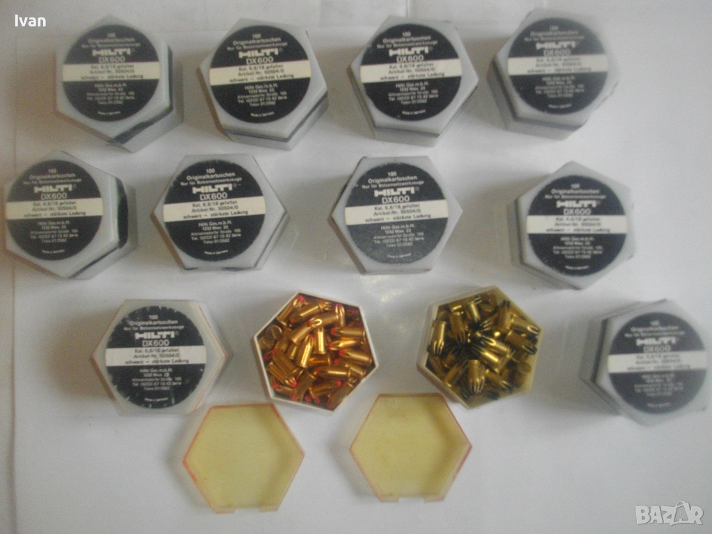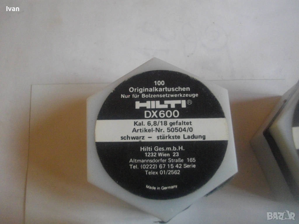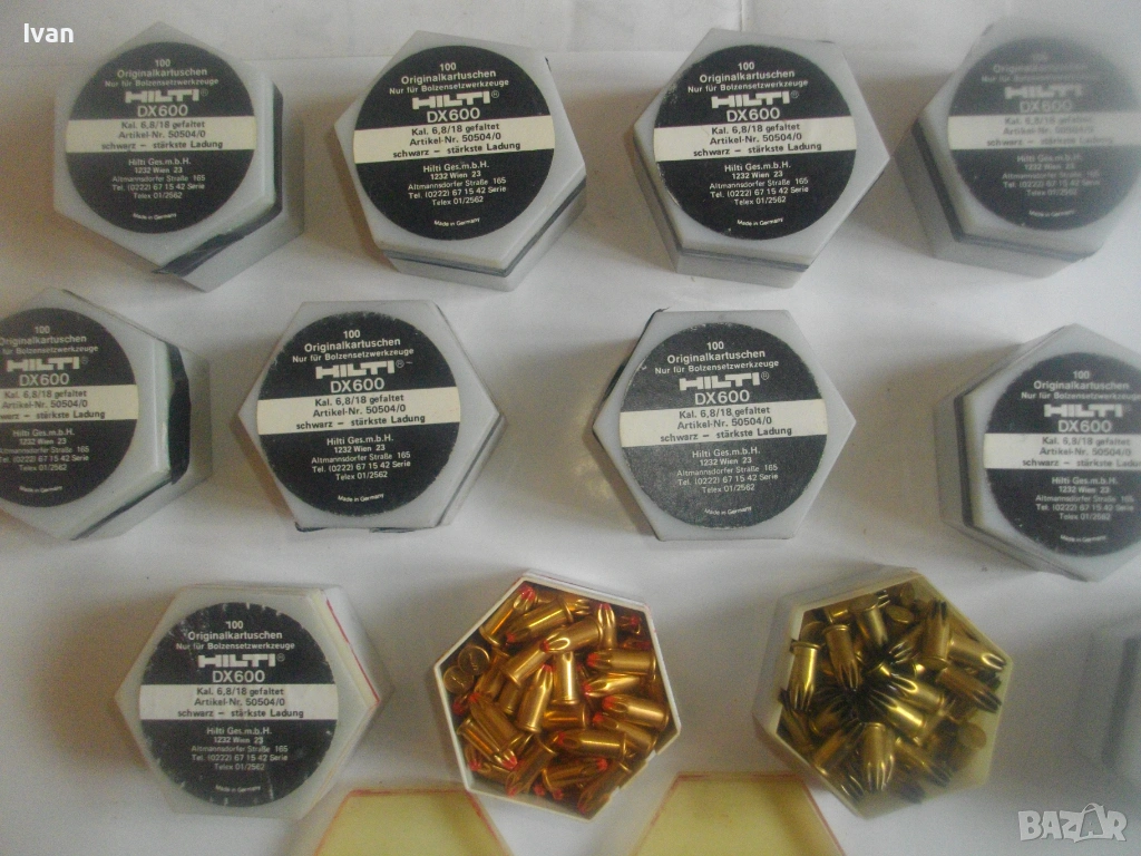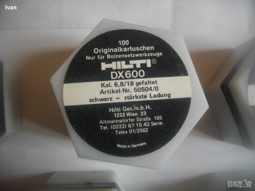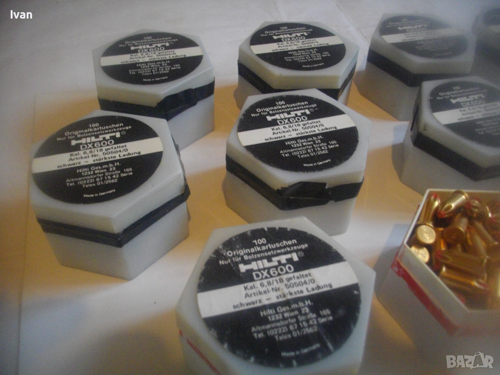 Оригинални немски кутии капси заряди за Хилти HILTI писктолет пушка бърз директен монтаж в бетон, метал, ламарина. Черни по сила капси, по 100 броя в оригиналните си кутии. Упоменато оригиналното производство - Made in Germany. Калибър на капсите заряди 6,8/18. Кутиите са съхранявани на сухо място, не са овлажнени.