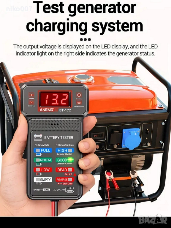 лед дигитален уред-тестер за акумулатор-уред за генератор за автомобил-ван-джип-бус-кола-мини ван