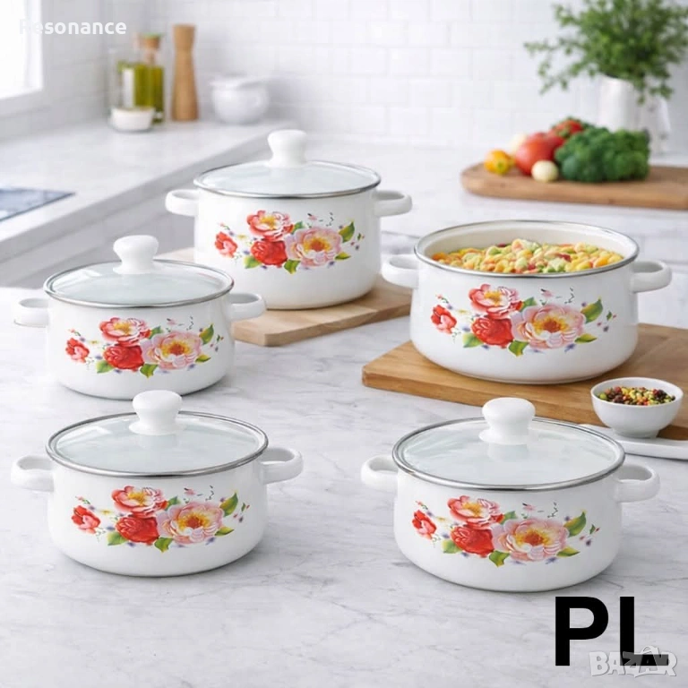 Тенджерите са с красиво бяло покритие и декоративна шарка, която придава стил и изисканост на всяка кухня. Емайлираното покритие предпазва храната от директен контакт с метала и осигурява по-здравословно готвене без вредни изпарения.