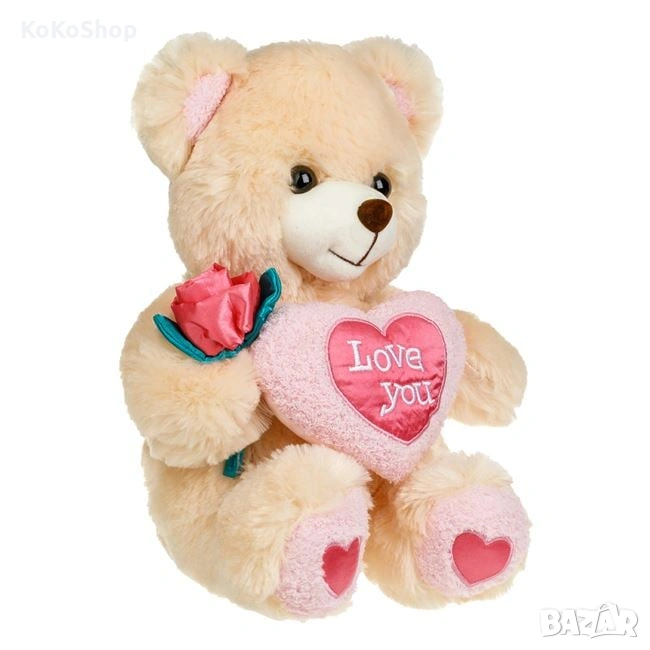 Мечето е изработено от мек и приятен на допир плюш и е допълнено с декоративна роза, което го прави подходящ подарък за любимата жена.