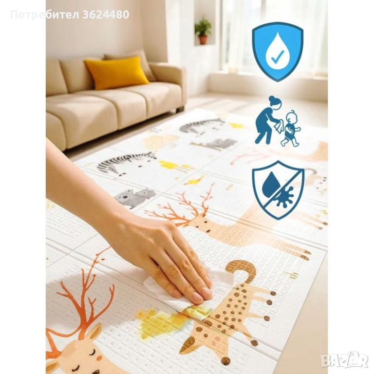 Търсите лесна за поддръжка и преносима подложка за Вашето бебе? Нашето двулицево килимче XPE съчетава стил и функционалност. Благодарение на специалното си водоустойчиво покритие, почистването е детска игра – необходима е само мокра кърпа. Подложката е ултра лека и удобна за пренасяне, което я прави чудесен спътник при посещения при гости, семейни пътувания или за игра в градината. Плътната XPE пяна осигурява отлична термоизолация от студения под, докато двустранните графики превръщат всяко кътче в стаята в образователна площадка. Това е инвестиция в сигурността и забавлението на Вашето дете от първия ден.