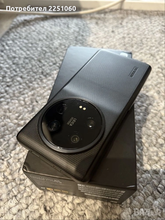 Телефон Xiaomi 13 Ultra, Оригиналната кутия + зарядно, оригиналният черен твърд гръб от комплекта и книжките + старата батерия.