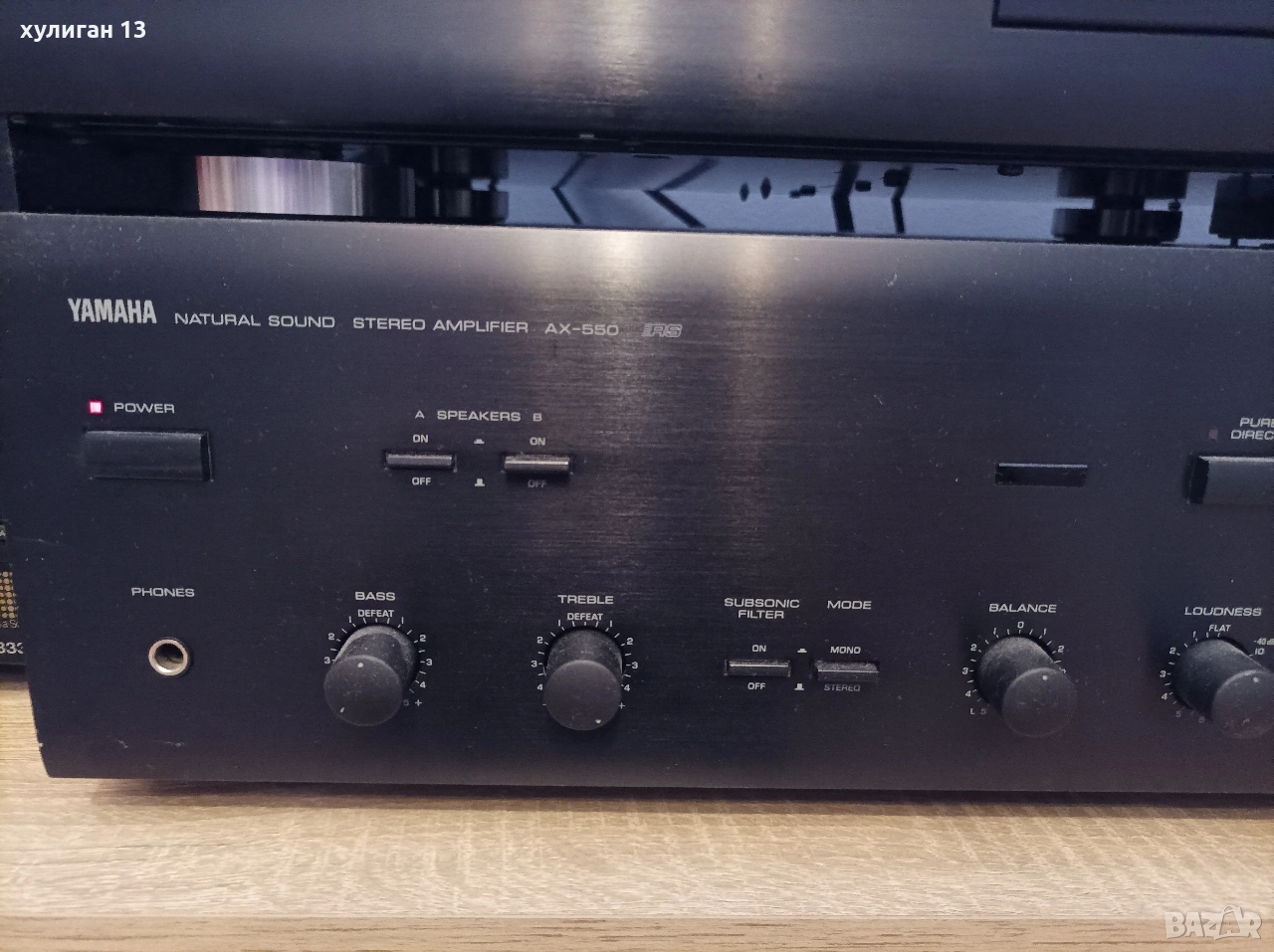 1. Усилвател Yamaha AX 550, работи с тонколони 4 -16 ома, 85 вата при 8 ома. Няма претенции към марката тонколони, пробвал съм с 5 марки, свири отлично с всички.Желязна транзисторна машина, инфо в нета колкото щеш. 11 кг., стандартна ширина. Цена 150 евро с дясното дистанционно.