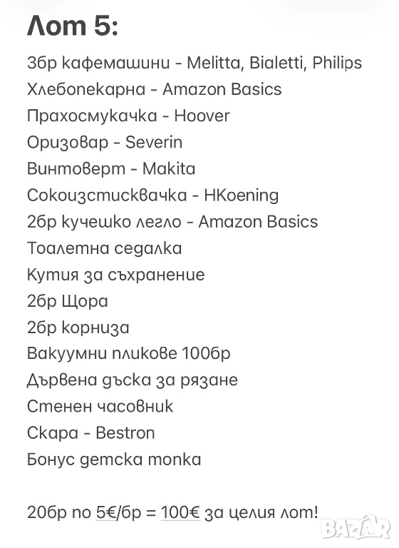 ✅ Цена 5€ на артикул = 100€ за ЛОТ!