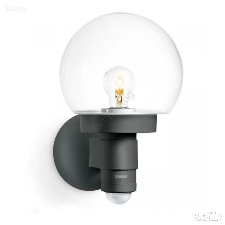 - Външна стенна лампа със сензор, подходяща за фасадата на вашия дом.