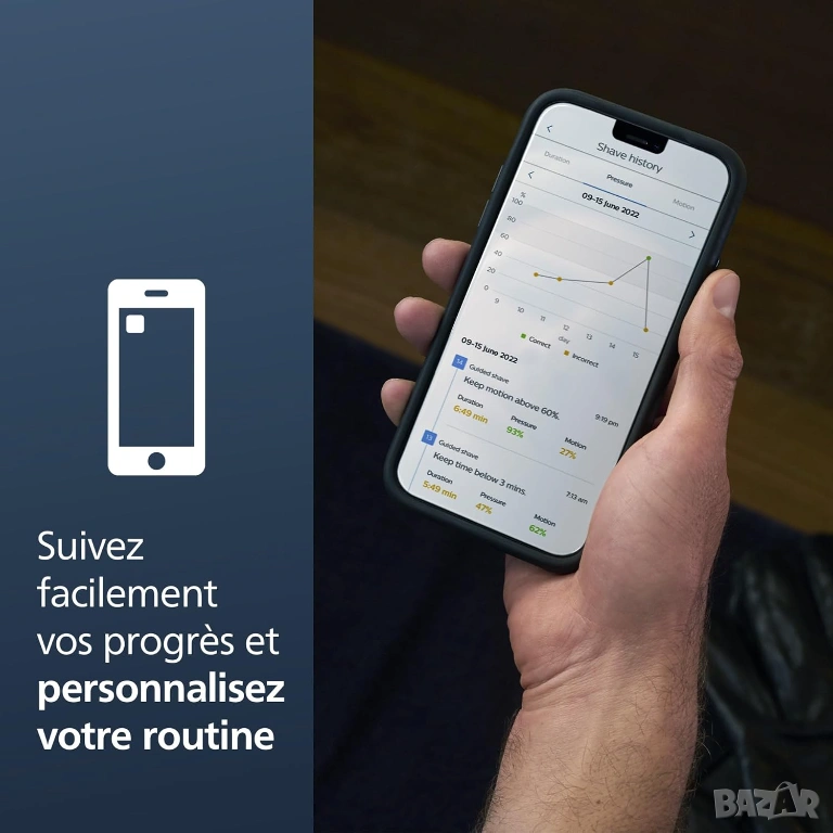 Самобръсначката е 100% водоустойчива и създадена за удобство и дълготрайна употреба – с до 60 минути работа след 1 час пълно зареждане, 5-минутно бързо зареждане за едно пълно бръснене и дълъг живот на самозаточващите се ножчета.