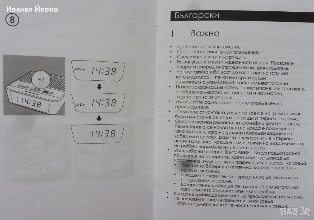 радио с часовник и будилник оборудван с FM