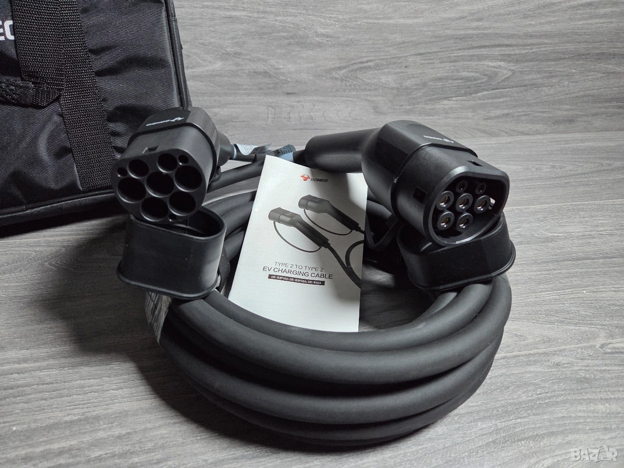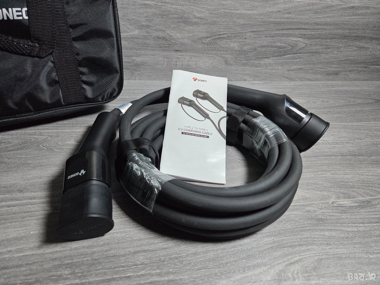 ЧИСТО НОВ Type 2 to Type 2 кабел за зареждане на автомобили, оригинален на марката GONEO + чанта / калъф за лесно пренасяне и кутия !