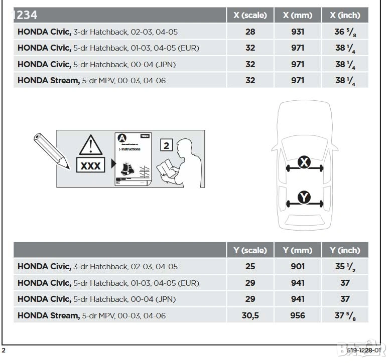 Багажник напречни греди THULE за HONDA Civic Hatchback 2001-2005г