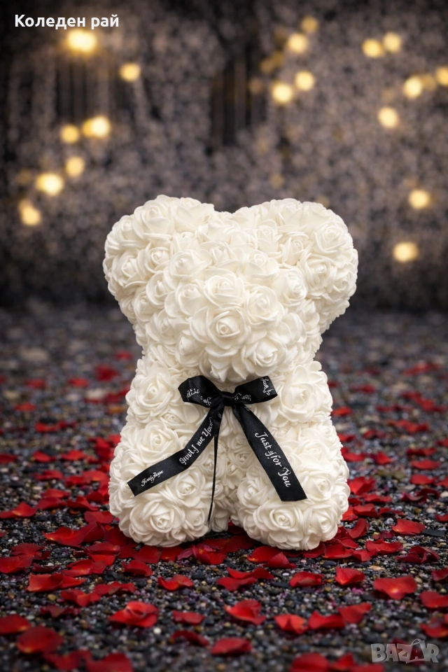 Луксозно бяло мече от вечни рози + Премиум Кутия (23 см) → Обява 53307701