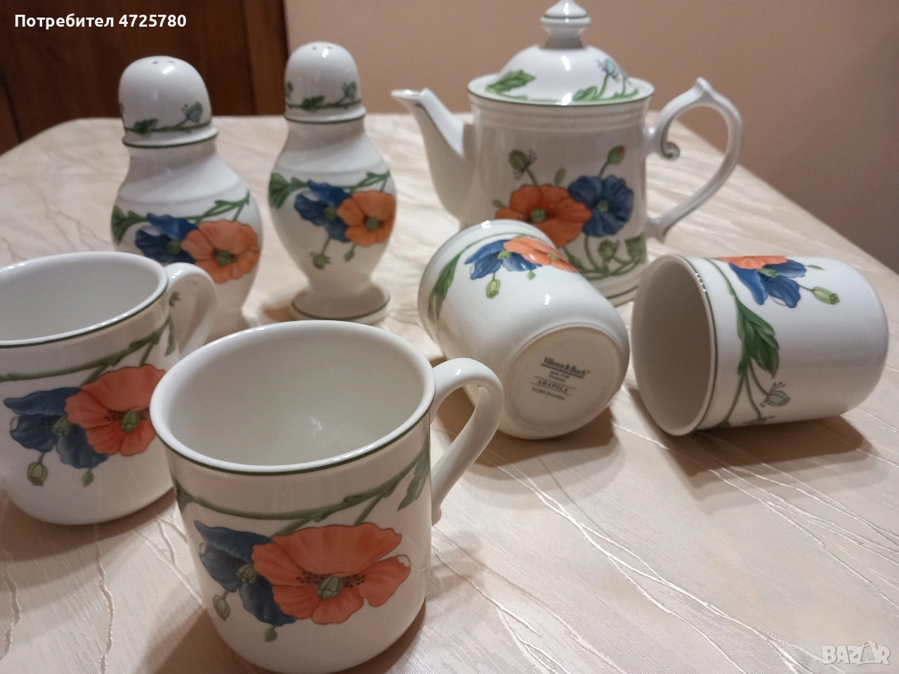 villeroy boch Amapola -4 чаши 200 мл, чайник 1.3 л и 2 солници
