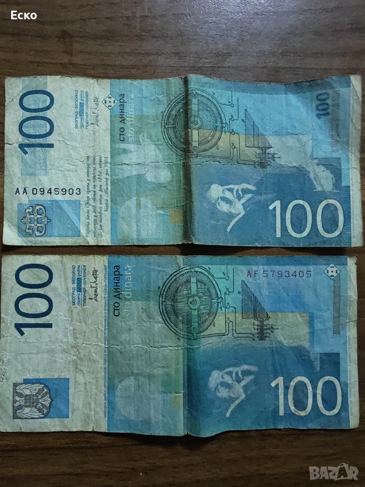 Банкнота - Сърбия - 100 динара 2003г. и 2000г. → Обява 53307774