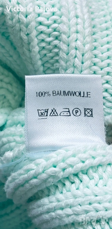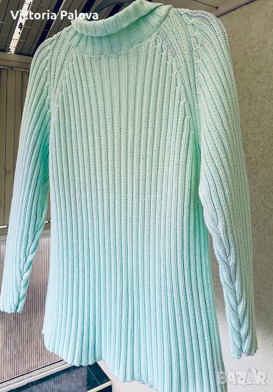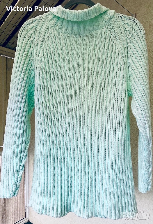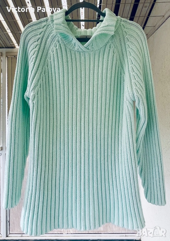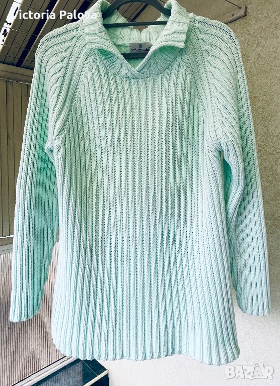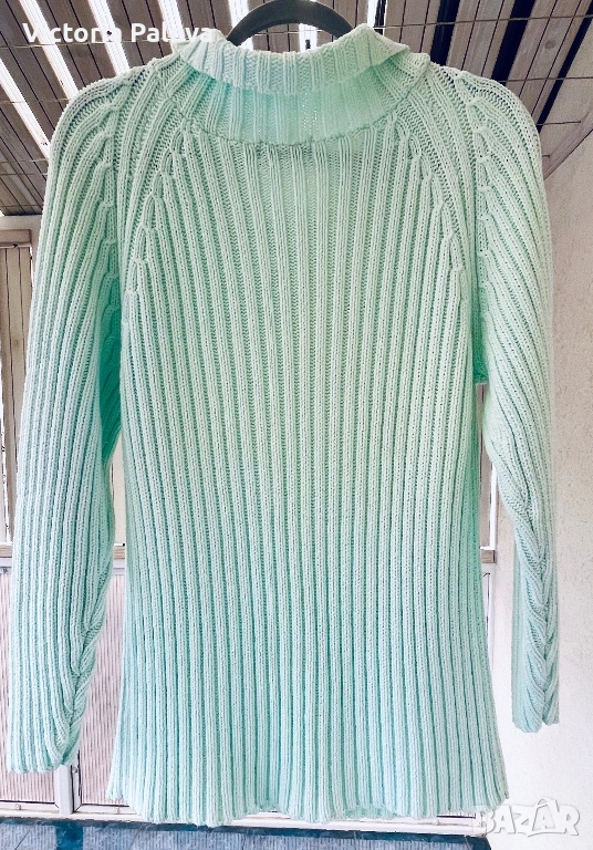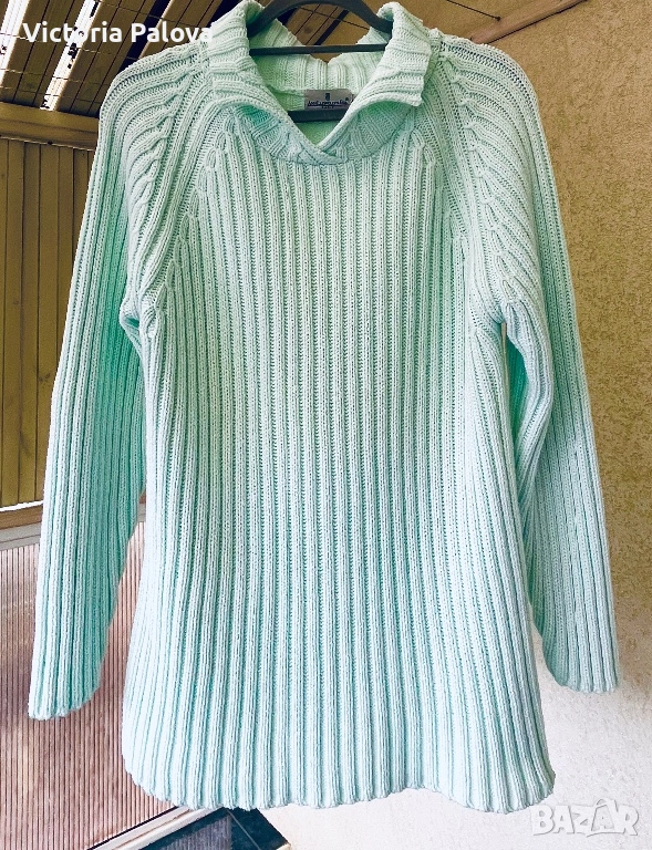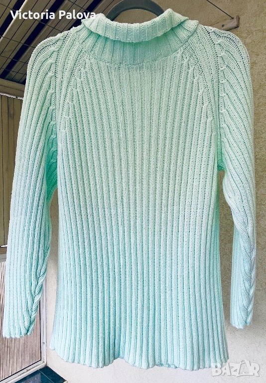 Британска модна компания, създаваща елегантни артикули. Този модел е изработен от 100% чист памук в светъл тюркоазен ментов цвят, който се откроява; стилен дизайн с плътна вертикална плетка рипс и красиви плетени коси на ръкавите реглан. ГО -55см, дължина - 69см. Добавете доза свежест към гардероба си с този прекрасен плетен пуловер!😃
