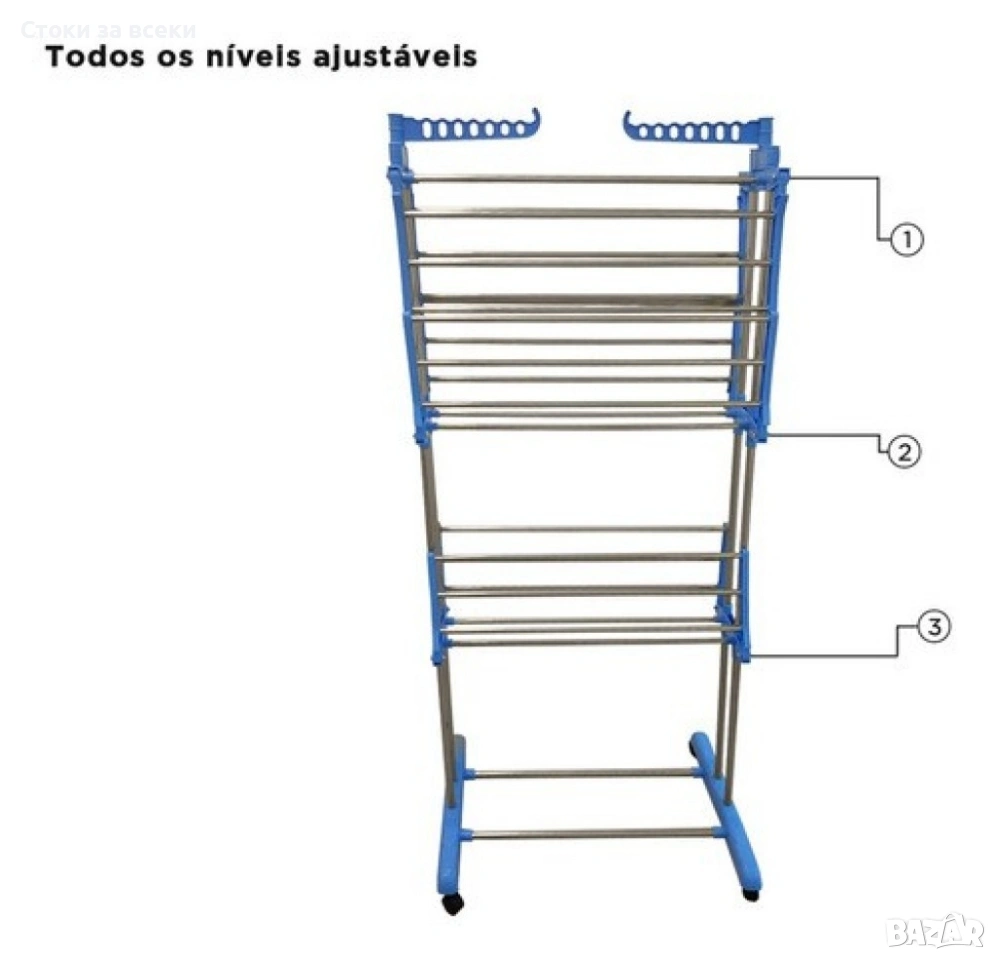 Сгъваем сушилник за дрехи на колелца – практична стойка за сушене на пране → Обява 53308292