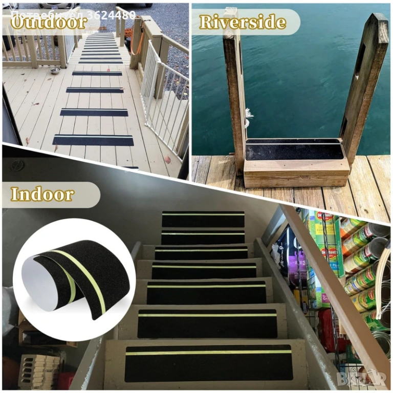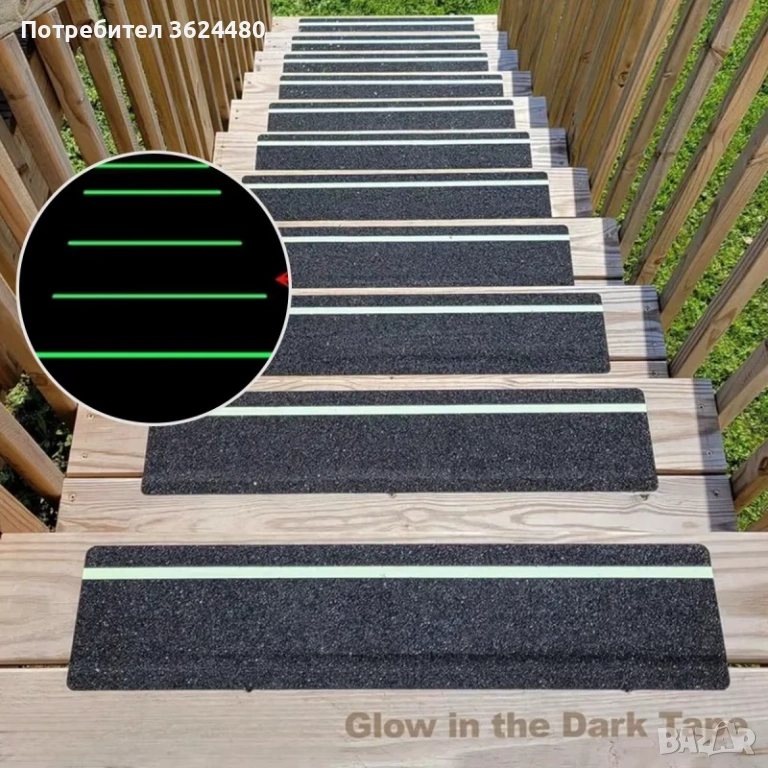 Уникалната комбинация от материали включва основа от PVC за здравина, PET за светещия елемент и твърд абразив от алуминиев оксид за сцепление. За да активирате светенето, е нужно само да осигурите достъп на светлина до стълбите за 2-3 часа дневно.