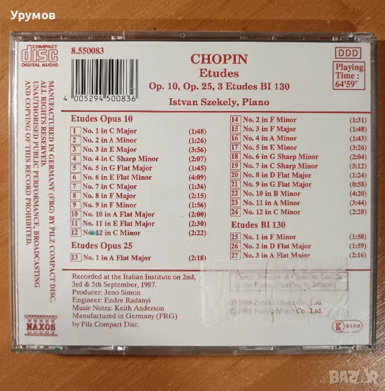 CD Chopin, Istvan Szekely – Etudes Op. 10, Op. 25 & BI 130, снимка 1 - CD дискове - 53308364 CD Chopin, Istvan Szekely – Etudes Op. 10, Op. 25 & BI 130, снимка 2 - CD дискове - 53308364 CD Chopin, Istvan Szekely – Etudes Op. 10, Op. 25 & BI 130, снимка 3 - CD дискове - 53308364 CD Chopin, Istvan Szekely – Etudes Op. 10, Op. 25 & BI 130, снимка 4 - CD дискове - 53308364 1/4