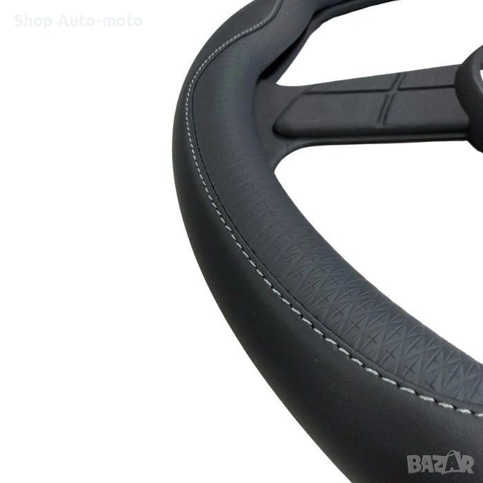 Висококачествен калъф за волан 38 см, създаден да подобри комфорта, контрола и визията на автомобила. Изработен от издръжлива еко кожа с противоплъзгаща текстура.