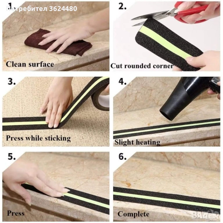 Комплектът съдържа:1 х Ролка светеща противоплъзгаща лента (10м).