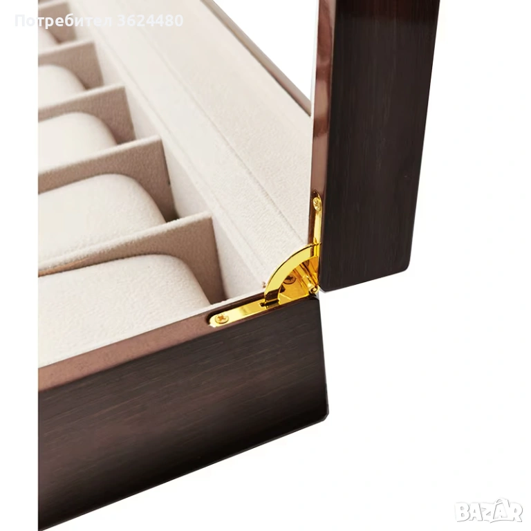 Превърнете съхранението на Вашата колекция в изкуство с нашата луксозна дървена кутия за часовници в цвят орех. Тази премиум дървена конструкция не е просто органайзер, а модерен и луксозен дизайн, който служи за елегантен интериорен акцент във Вашия дом. Кутията разполага с 6 отделения, всяко от които е снабдено с мека подплата, осигуряваща нежна грижа и защита от прах, влага и надраскване. Прозрачният капак позволява постоянен преглед на Вашата колекция, докато деликатната златиста метална закопчалка гарантира сигурно съхранение и придава завършен аристократичен вид.