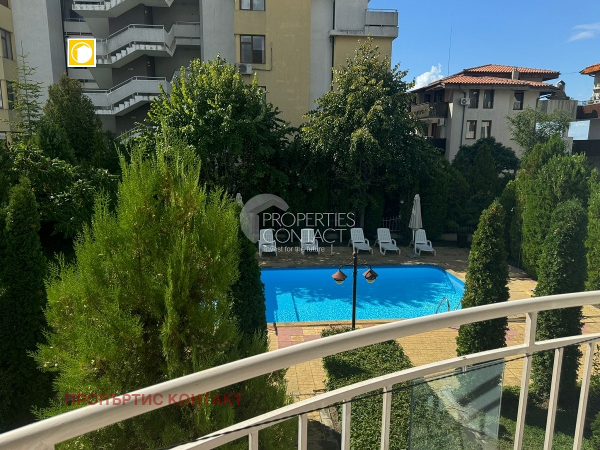 Предлагаме за продажба напълно обзаведен двустаен апартамент в комплекс „Вила Юг“, разположен само на няколко минути пеша от плажа в Свети Влас. Комплексът се отличава с ниска такса поддръжка и отлично местоположение – в близост до яхтеното пристанище Марина Диневи, магазини, ресторанти, кафенета, СПА център и други удобства. Апартаментът се намира на втория етаж от пететажна сграда и е с обща площ от 55 кв.м. Състои се от просторна всекидневна с кухненски бокс и трапезария, спалня, баня с тоалетна и тераса. Продава се напълно обзаведен и оборудван, в отлично състояние, готов за нанасяне или отдаване под наем. Този имот в Свети Влас е подходящ както за целогодишно живеене, така и като инвестиция с потенциал за доход от наем през летния сезон. Сградата предлага басейн и паркинг и е удобно разположена в северната част на курорта, в близост до Църквата „Свети Власий“ и яхтеното пристанище Марина Диневи. Центърът на Свети Влас и основните удобства са на пешеходно разстояние. Такса поддръжка: 250 евро годишно.
