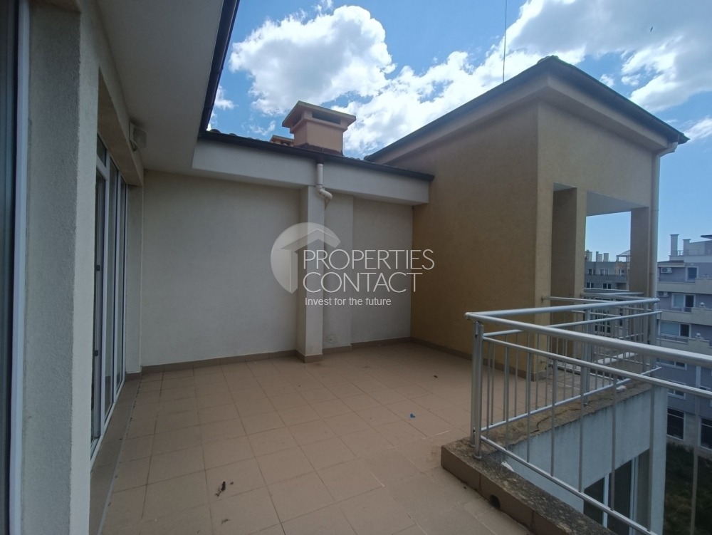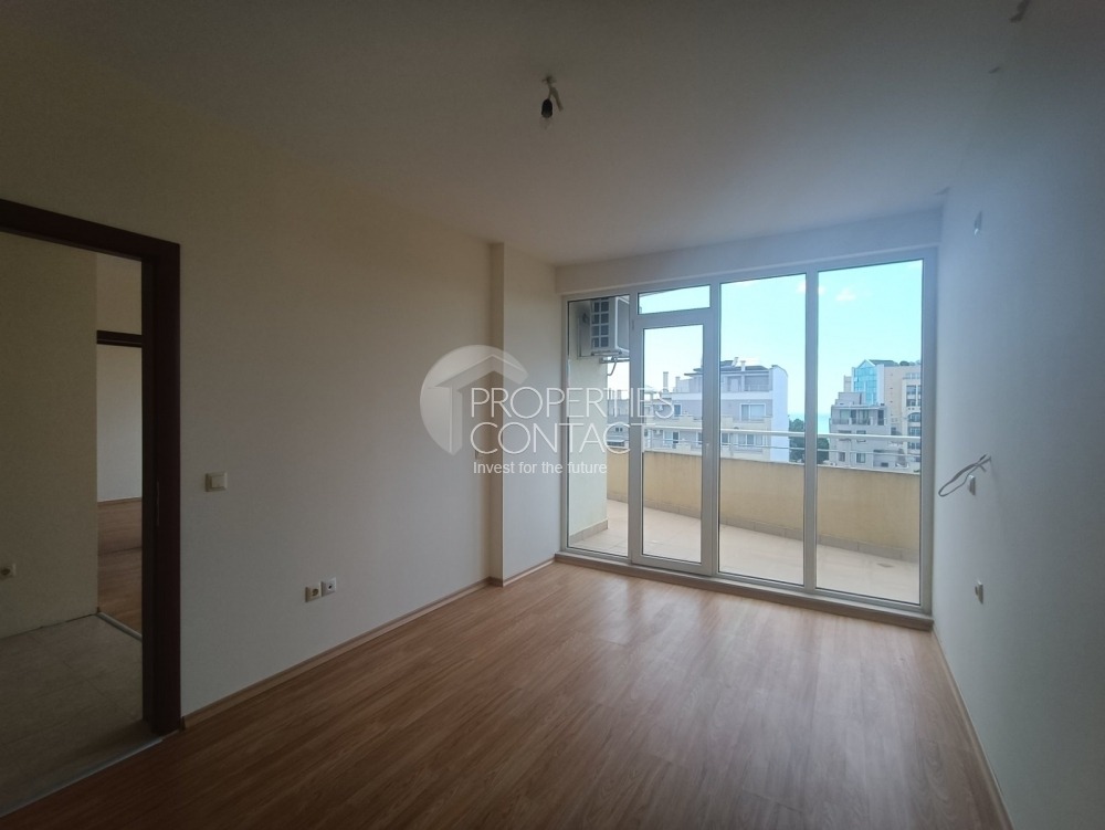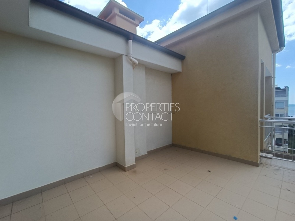 Продава се тристаен апартамент с голяма тераса в жилищен комплекс, в непосредствена близост до южния плаж в град Поморие. Жилището е много светло и просторно , намира се 6-ти етаж и разполага с обща площ от 91 кв.м. Състои се от входно антре, дневна с кухненски бокс, коридор, две спални , баня и тоалетна и вана, има възможност за обособяване на кът за барбекю. Изложение - юг. Апартаментът се продава не обзаведен. Жилището е просторно и слънчево. Разстояние до плажа е 150 метра , има пряка улица, която води до Южния плаж. Сградата разполага с открит басейн и 24-часова охрана. Паркирането в района е свободно и безпроблемно. Наблизо е разположен голям летен аквапарк, манастир „Св. Георги“, множество магазини, ресторанти и услуги. Автогарата е на 5 минути пеша. Районът е тих и спокоен.