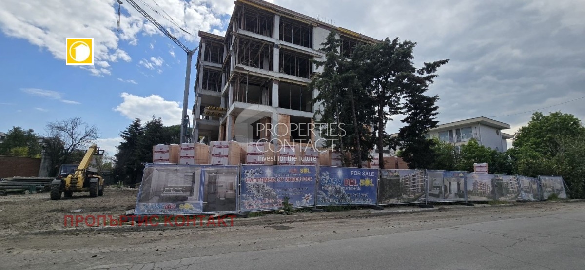 Предлагаме за продажба комфортен двустаен апартамент в новостроящия се комплекс 'Каса Дел Сол Бутик" разположен в сърцето на Слънчев бряг, в близост до автогарата, основните пътни артерии на курорта и само на кратко пешеходно разстояние от плажа. Апартаментът е разположен на втори етаж, с обща площ от 61,56 кв.м, и включва входно антре, просторна дневна с кухненски бокс, самостоятелна спалня, баня с тоалетна и тераса с излаз както от дневната, така и от спалнята. Жилището се предлага напълно обзаведено с нови и стилни мебели, както и с климатик във всяка стая. Южозападното изложение осигурява естествена светлина и топлина през по-голямата част от деня. Апартаментът е подходящ както за целогодишно обитаване, така и като инвестиция с отличен потенциал за отдаване под наем. Проектиран с грижа за удобството на своите обитатели, комплексът ще разполага с открит басейн с детска секция, зелени площи, детска площадка, кафе-бар, ресторант, фитнес зала, асансьори, 24-часова охрана и видеонаблюдение, както и възможност за паркиране. В комплекса предлагаме за продавба и други типове апартаменти според нуждите и предпочитанията на клиентите: - уютни студиа с начална цена от 78 291 евро, - функционални двустайни жилища, от 128 045 евро, - просторни тристайни апартаменти, от 222 364 евро. Всички имоти се предлагат с пълно ново обзавеждане и климатизация. Сградата се намира в процес на строителство и в момента е на етап Акт 14, като завършването ? и получаването на Акт 16 са планирани за юли 2026 г. Годишната такса поддръжка е в размер на 10 евро на кв.м. Предлага се и гъвкава схема на плащане: 2 000 евро резервационна такса, 30% от стойността при подписване на Акт 14, следват 20% при Акт 15, като при пълно плащане до този етап се предоставя отстъпка в размер на 3%. Остатъкът от 50% се заплаща при издаване на Акт 16, с възможност за отложено плащане до 6 месеца без оскъпяване.