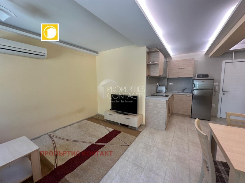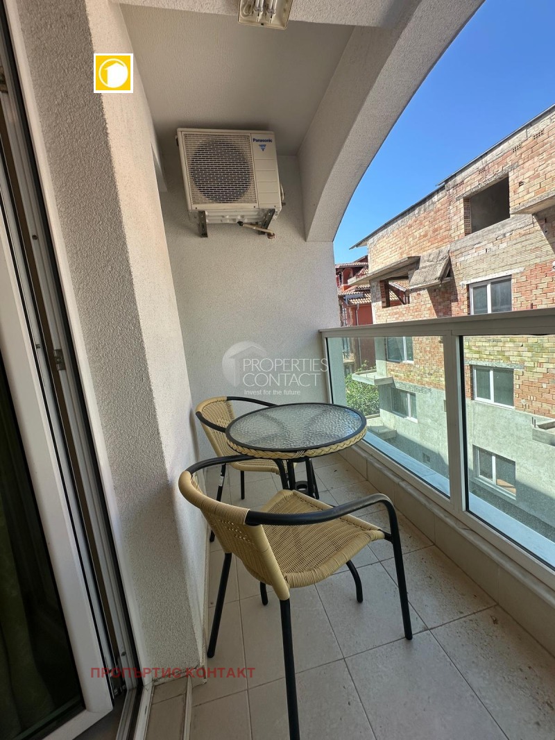 Предлагаме за продажба двустаен апартамент, разположен в уютния и добре поддържан комплекс "Омега" в Равда. Имотът се намира на 3-ти етаж и разполага с обща площ от 61 кв.м, като към него има и прилежащо мазе от 2 кв.м, ситуирано в сутерена. Апартаментът се състои от дневна с кухненски кът, просторна спалня, баня с тоалетна и тераса. Жилището се продава с мебели и техника, което го прави готово за живеене или отдаване под наем. Сградата разполага с Акт 16, а апартаментът има индивидуални партиди за ток и вода. Комплексът предлага разнообразни удобства за комфортен престой и целогодишно живеене – басейн,