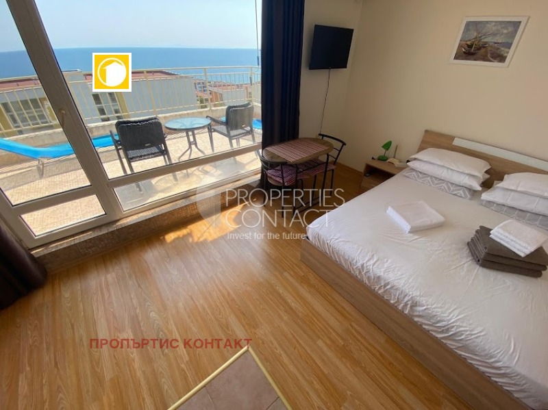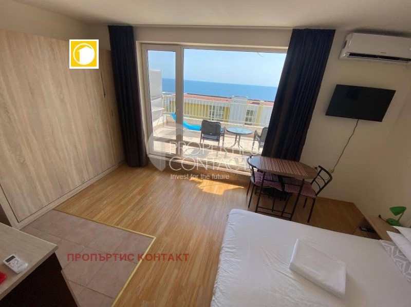 Предлагаме за продажба обзаведено студио в един от най-популярните комплекси по Южното Черноморие — Crown Fort Noks, част от Форт Нокс Гранд Ризорт, разположен между Свети Влас и Елените, само на няколко минути пеша от плажа. Площ: 48 кв.м Етаж: 6 Изглед: с гледка към морето Студиото се състои от просторна стая с кухненски бокс и зона за спане, баня с тоалетна и тераса с директен достъп до двора. Продава се напълно обзаведено и оборудвано, в отлично състояние – готово за живеене или отдаване под наем. Удобства в комплекс Crown Fort Noks: Няколко открити басейна Ресторанти и кафенета Спа център и сауна Супермаркет и аптека Детски площадки и мини аквапарк Спортни площадки и фитнес Охрана, рецепция и безплатен паркинг Локация: комплексът се намира между планината и морето, в тих и зелен район с чист въздух и красива панорама. ? Предимства: На първа линия с морска гледка Пряк достъп до двора – удобно за семейства и хора с деца Отлична инфраструктура и възможност за целогодишно живеене Подходящо за инвестиция и отдаване под наем