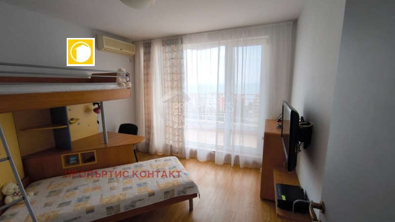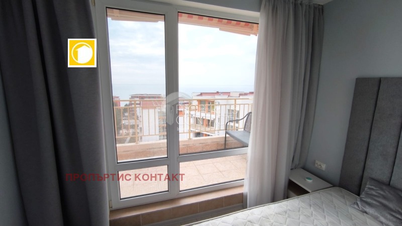 Представяме на Вашето внимание изгодна продажба - обзаведен тристаен апартамент с прекрасна гледка море в комплекс Краун Форт Нокс, разположен на 300 метра от плажа в Свети Влас. Апартаментът е с площ – 82,10 кв.м и се намира на 6-ти / последен етаж/ .В сградата има асансьор.Имотът се състои от : от коридор, всекидневна с кухненски бокс, две спални, баня с тоалетна и голяма ,около 15 кв.м тераса с прекрасна панорамна гледка море. Тристайният апартаментът се продава изгодно, напълно обзаведен и оборудван. Комплекс Краун Форт Нокс е разположен на брега на морето, между Свети Влас и Елените, в подножието на борова гора. Самият комплекс разполга с големи паркови площи и множество удобства. На разположение на собствениците са 17 открити басейна, четири ресторанта, супермаркет, фитнес център, интернет клуб, салон за красота, медицински център, детски площадки, барбекю зона и целогодишна охрана. Комплексът се поддръжа целогодишно в отлично състояние. Такса поддръжка 15 евро на кв.м на година.