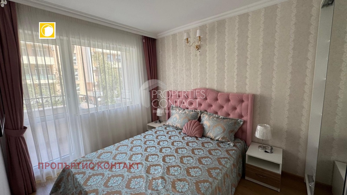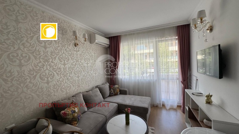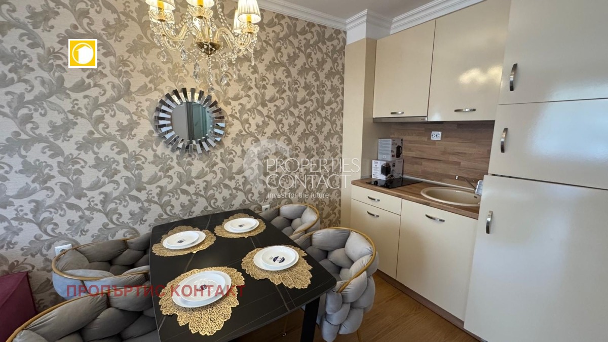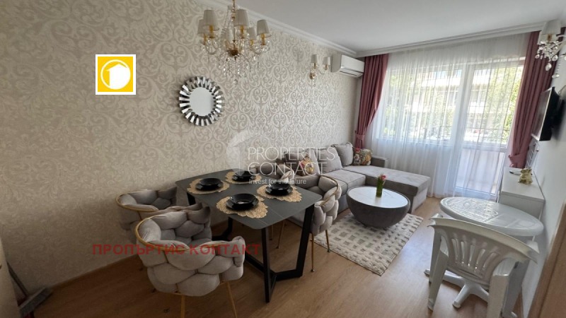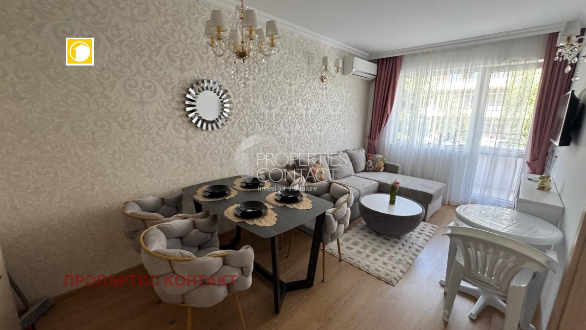 Предлагаме за продажба двустаен имот с мебели, разположен в елегантния и престижен комплекс Sweet Homes 6 – бутиков проект в центъра на Слънчев бряг, само на няколко минути пеша от морето и плажа. Апартаментът е с площ от 44 кв.м., на 3-ти етаж, с функционално разпределение: Дневна с кухня и трапезария Самостоятелна спалня Баня с тоалетна Балкон с гледка към вътрешния двор Жилището се продава напълно обзаведено с дизайнерски мебели и оборудване от висок клас. Готово е за живеене или отдаване под наем – отлична възможност за инвестиция в имот на морето. Комплексът предлага: ? Външен и вътрешен басейн ? СПА център, джакузи, сауна, зона за релакс ? Барбекю, детски кът, клубна система с допълнителни удобства ? Охраняема територия, рецепция и паркинг Тиха и зелена локация в централната част на курорта, с удобен достъп до магазини, ресторанти, паркове и плажа. Купи изгодно от строителя – без комисиона! Свържете се с нас днес и открийте своя нов дом или инвестиция на морето в България.