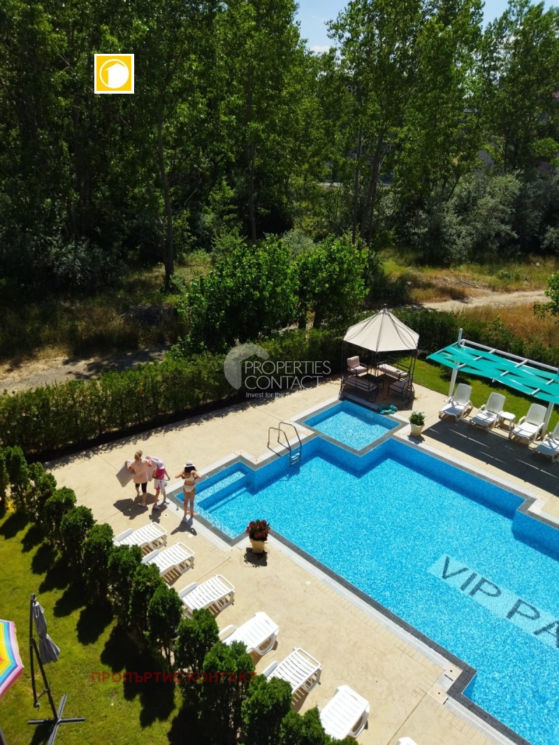 Продава се апартамент, само на 350 метра от морето в затворен комплекс Vip Park. Основни характеристики на имота: Тип имот: Двустаен апартамент Площ: 52 кв.м. Етаж: Партерен Собствен вътрешен двор Разпределение: антре, дневна с кухненски бокс и трапезария, спалня, баня с тоалетна, двор- 35м2 . Климатик в дневната, топъл под . Продава се напълно обзаведен и готов за нанасяне Удобства в комплекса Vip Park: Жилищният комплекс е затворен тип, с модерна инфраструктура и разнообразни удобства: Голям басейн за възрастни с детска зона Чадъри и шезлонги Детска площадка с люлки и пързалки Лоби бар Сауна и фитнес зала Поддържани зелени площи и алеи за разходки Охраняема и оградена територия с видеонаблюдение Паркинг с денонощна охрана Комплексът се намира близо до морето, на само 350 метра от просторна плажна ивица, където ще откриете множество възможности за спорт, забавления и релакс. Районът е предпочитан от туристи и собственици на ваканционни имоти.