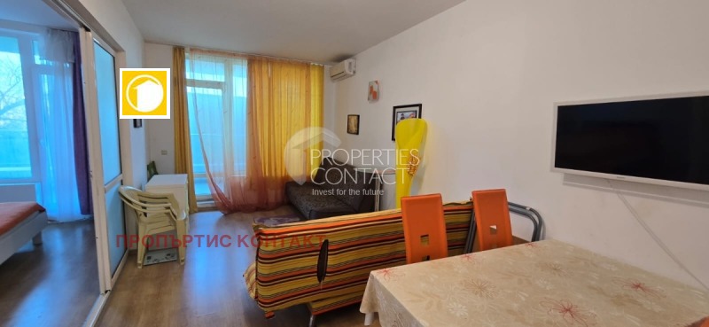 Предлагаме за продажба обзаведен двустаен апартамент с частична гледка към морето в комплекс „Силвър Бийч“, град Бяла. Имотът се намира на първи етаж и е с площ от 89 кв.м. Състои се от коридор, баня с тоалетна и душ кабина, всекидневна с кухненска зона, спалня, която е отделена от всекидневната с плъзгаща врата, както и тераса с частична гледка към морето. Апартаментът се продава напълно обзаведен и оборудван с всичко необходимо за живеене. Изключително подходящ имот за инвестиция и отдаване под наем. Комплекс „Силвър Бийч“ се намира на първа линия до морето, само на 50 метра от плажа, в тих и спокоен район, близо до градската инфраструктура. Комплексът предлага следните удобства: -Два открити плувни басейна -Зони за отдих -Детска площадка -Спортна площадка -24-часова охрана с видеонаблюдение -Паркоместа -Подземен паркинг -Ресторант -Магазин за хранителни стоки Летище Варна се намира на 60 км.