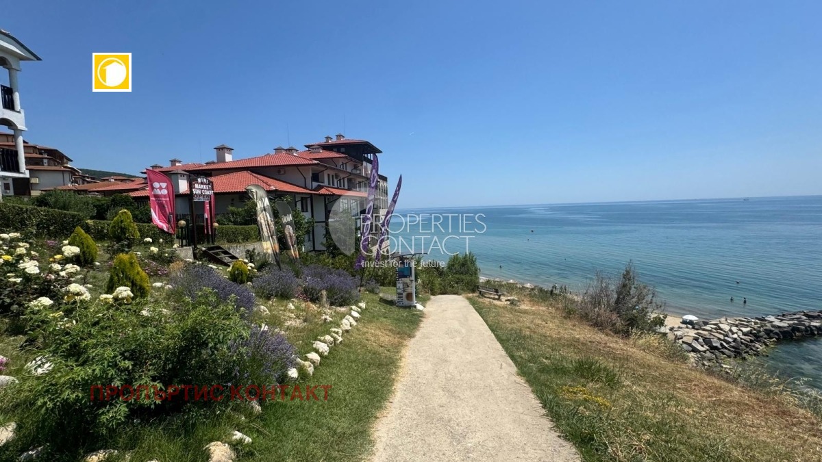 Предлага се просторен двустаен апартамент с фронтална морска гледка в луксозния комплекс „Сън Коуст“, разположен на първа линия море в Свети Влас. Апартаментът е с обща площ от 77 кв.м, намира се на втори етаж и се състои от светла и просторна дневна с кухненски бокс, удобна спалня, баня с тоалетна и голяма тераса с великолепна, фронтална гледка към морето. Жилището се продава напълно обзаведено и оборудвано. Комплекс „Сън Коуст“ предлага спокойна и живописна атмосфера, модерен комфорт и отлично обслужване, като се намира само на няколко метра от малък, уединен плаж и в непосредствена близост до яхтеното пристанище „Марина Диневи“. Сред удобствата на комплекса са: открит басейн с панорамна гледка към морето зона за слънчеви бани и релакс ресторант и бар до басейна мини маркет с всичко необходимо за вашия престой добре поддържани зелени площи и алеи Малкият и тих плаж се намира само на 50 метра от комплекса, което прави имота изключително подходящ както за ваканционен дом, така и за доходоносна инвестиция чрез отдаване под наем. Този апартамент с морска гледка в Свети Влас е идеален избор за хора, търсещи комфорт, спокойствие и близост до морето в една от най-живописните части на българското крайбрежие.