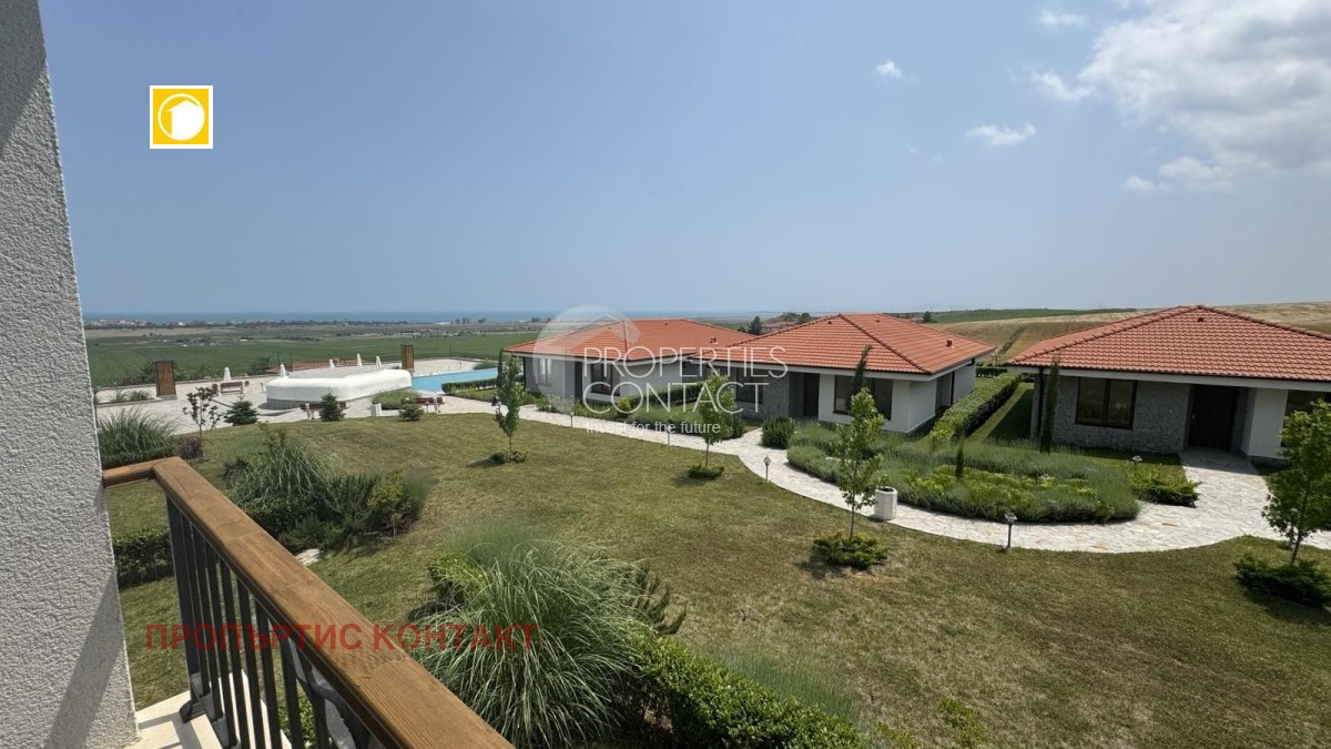 Предлагаме за продажба двустаен апартамент с площ от 85 кв.м, разположен на втори етаж в елитния комплекс Vineyards Resort , само на 3 км от плажа и морето на град Ахелой. Имотът се състои от : – Просторна дневна с кухненска зона – Спалня – Баня с тоалетна – Коридор – Балкон с панорамна морска гледка Апартаментът се продава напълно завършен, с подови настилки, оборудвана баня, климатик и боядисани стени. Отличен избор за целогодишно живеене, ваканции или инвестиция с отдаване под наем. Комплексът предлага: ? 3 външни басейна ? СПА център с вътрешен басейн, сауна, парна баня ? Паркинг, охрана, зелени площи и супермаркет Това е чудесна възможност да купите апартамент в България с гледка към морето – в сигурна и поддържана среда близо до природата и морето.
