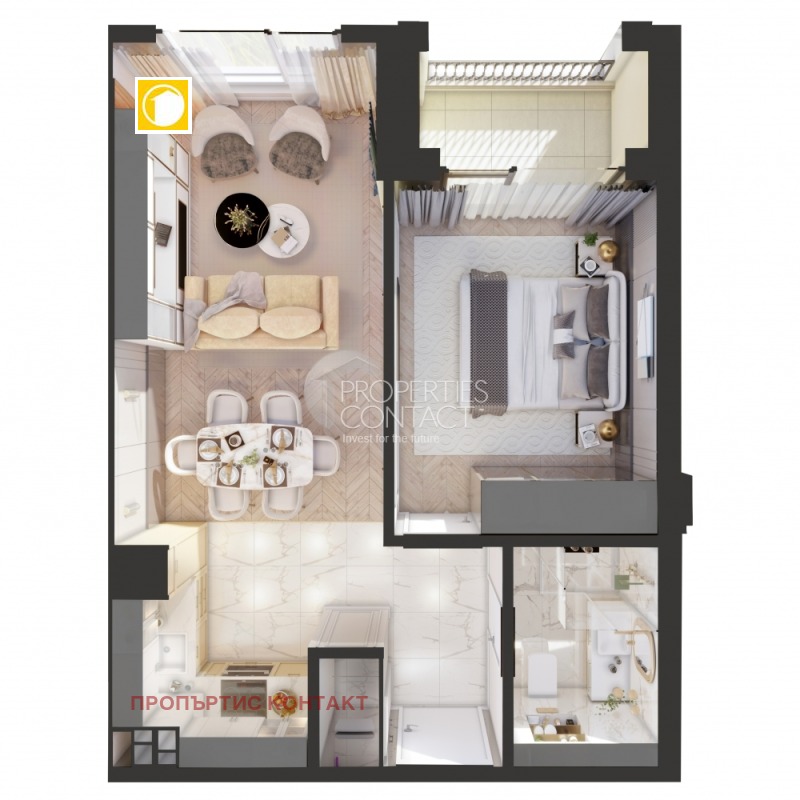 Продаваме двустаен апартамент в непосредствена блидост до плаж Хармани в Созопол Жилището е с площ 61,08 кв.м. на втори етаж. Състои се от всекидневна с кухненски бокс, спалня, баня с тоалетна, склад и тераса. Продава се необзаведен, на тапа по БДС + боя + поставени ключове и контакти, както следва: • Завършени мазилки и замазка на пода, с боядисване в бяло, но без полагане на настилки; • Прокарани електрически комуникации, с монтаж на ключове за осветление и контакти; • Монтирани дограма и входни врати, без интериорни врати; • Прокарани ВиК връзки, без монтаж на моноблок, санитария, кранове, сифони, смесители и т.н. • възможност на завършване до ключ, както и за мебелиране срещу допълнително заплащане по договаряне. Сградата се изгражда на 150 м от плаж Харани, в новия град на Созопол, на 200 м от училището, главната улица, в близост до много магазини и ресторанти. Сградата е в неокласически стил, с красиви арки и елементи, характерни за Средиземноморските райони от периода на класическата античност. Тя се отличава с ярка индивидуалност и перфектно съотношение между хармоничен и балансиран тип красота. Без такса поддръжка! В сградата се предагат двустайни апартаменти с площ от 48,90 кв.м. до 65,00 кв.м. на цени от 57 650 евро до 94 250 евро Гаражи - от 10 000 евро Паркомясто - от 7000 евро Започване на строителството: Октомври 2022, Завършване с Акт 16: Март 2024 г.